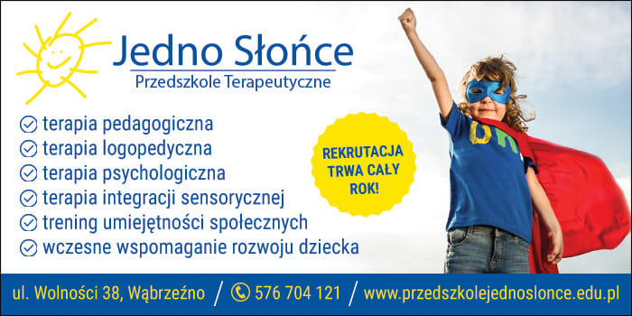 Fundacja Jedno Słońce od września 2019 r. prowadzi przedszkole terapeutyczne w Wąbrzeźnie. To pierwsza tego placówka w powiecie wąbrzeskim. Do tej pory mieszkańcy musieli wozić maluchy do przedszkoli terapeutycznych w okolicznych powiatach – golubsko-dobrzyńskim lub grudziądzkim.